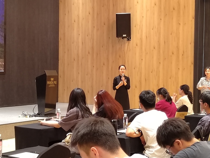 讲座伊始,高总监对熊猫猪猪·两头乌国际牧场进行了全方面的介绍,包括企业概况、企业荣誉、品牌定位、IP形象、园区的规划布局等情况。“熊猫猪猪”通过一二三产业的融合,走出了一条彰显地方农业特色、凸显生态养殖魅力、形成独特文化品牌的农文旅发展新路,并在带动当地乡村发展、村民就业等方面发挥了积极的作用,熊猫猪猪·两头乌国际牧场与白龙桥镇组建共同富裕联盟,以“共同发展”助推“共同富裕”。高总监展示了园区蕴含的IP元素及沉浸式的场景与空间,介绍了企业在IP融合上的多元化探索。最后对同学们在营销以及产业发展等提问进行了耐心的回答。