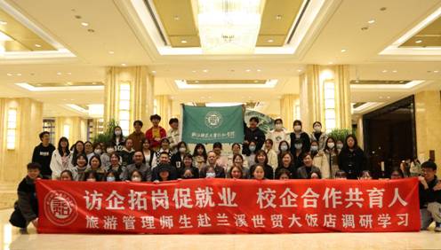 根据浙师大行知学院访企拓岗促就业专项行动工作部署,为进一步搭建校企合作平台,加强与兰溪校地的合作,3月22日下午,商学院旅游管理专业师生一行赴兰溪世贸大饭店开展企业调研学习活动。