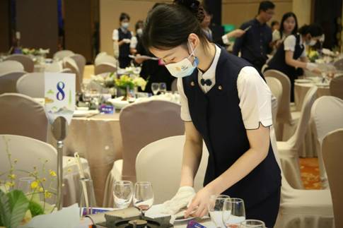 同学们任劳任怨、不负重托,以饱满的服务状态和良好的职业精神圆满地完成了兰溪发展大会晚宴接待工作。旅游管理专业学生们的专业技能和职业素养以及心理素质都得到了一次全面的考验,大力提升了餐饮服务的专业技能,展现了我院学子的风采。
