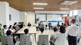 第一站学员们来到义乌国际陆港电商城,通过视频宣传片、服务讲解等了解了义乌电商发展历程、产业生态布局及发展优势等内容。随后,特别安排了园区各企业代表与学员面对面交流环节,学员们积极提问,与企业代表展开了热烈的讨论。
