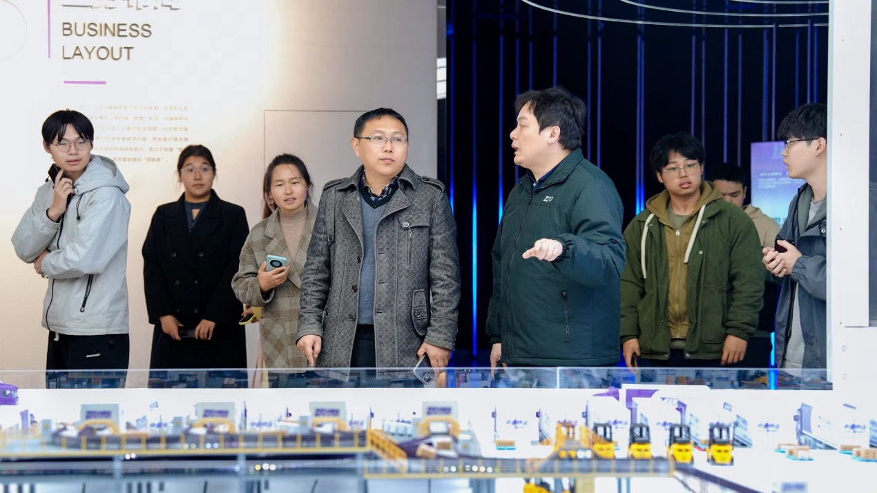 在中通快运公司,师生们受到 了热情接待。在公司负责人的带领下,大家首先参观了中通快运的企业展厅,详细了解了公司的发展历程、价值取向以及员工关怀等内容。讲解员详细介绍了中通快运从追随、追赶到领先的发展历程,并通过具体实例展现了公司在物流领域的创新成果和对社会的贡献。