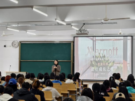 11月7日上午,专场宣讲会在我校3号楼107教室举行,这场线下活动由招就部张美珠老师和旅游管理专业何宸希老师主持,商学院张闻羽副院长、旅游管理专业吴佳老师、赵玉琪老师参加。金华万豪酒店人力资源部副经理Tracy、绍兴大禹开元观堂的人力资源副总监潘佳明一起带来招聘干货。