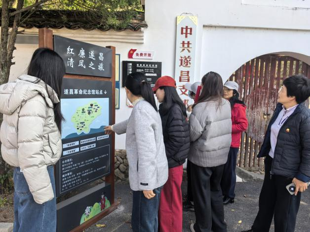 为深入学习宣传贯彻党的二十届四中全会精神,深刻领会新时代新征程的使命任务,进一步激发全体教师党员的政治热情和历史担当,12月6日,商学院党总支组织全体教师党员赴遂昌革命纪念馆,开展了一场以“锚定目标十五五 凝心聚力创辉煌”为主题的党日活动,在追寻红色足迹中感悟初心使命,凝聚奋进新征程的磅礴力量。