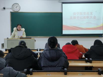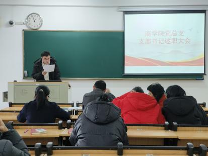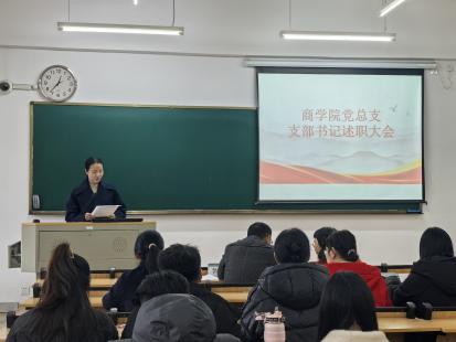 2025年12月31日,商学院党总支在2-310教室召开2025年度支部书记述职评议会。商学院班子成员出席会议,各党支部书记、支部委员及党员代表参加会议。