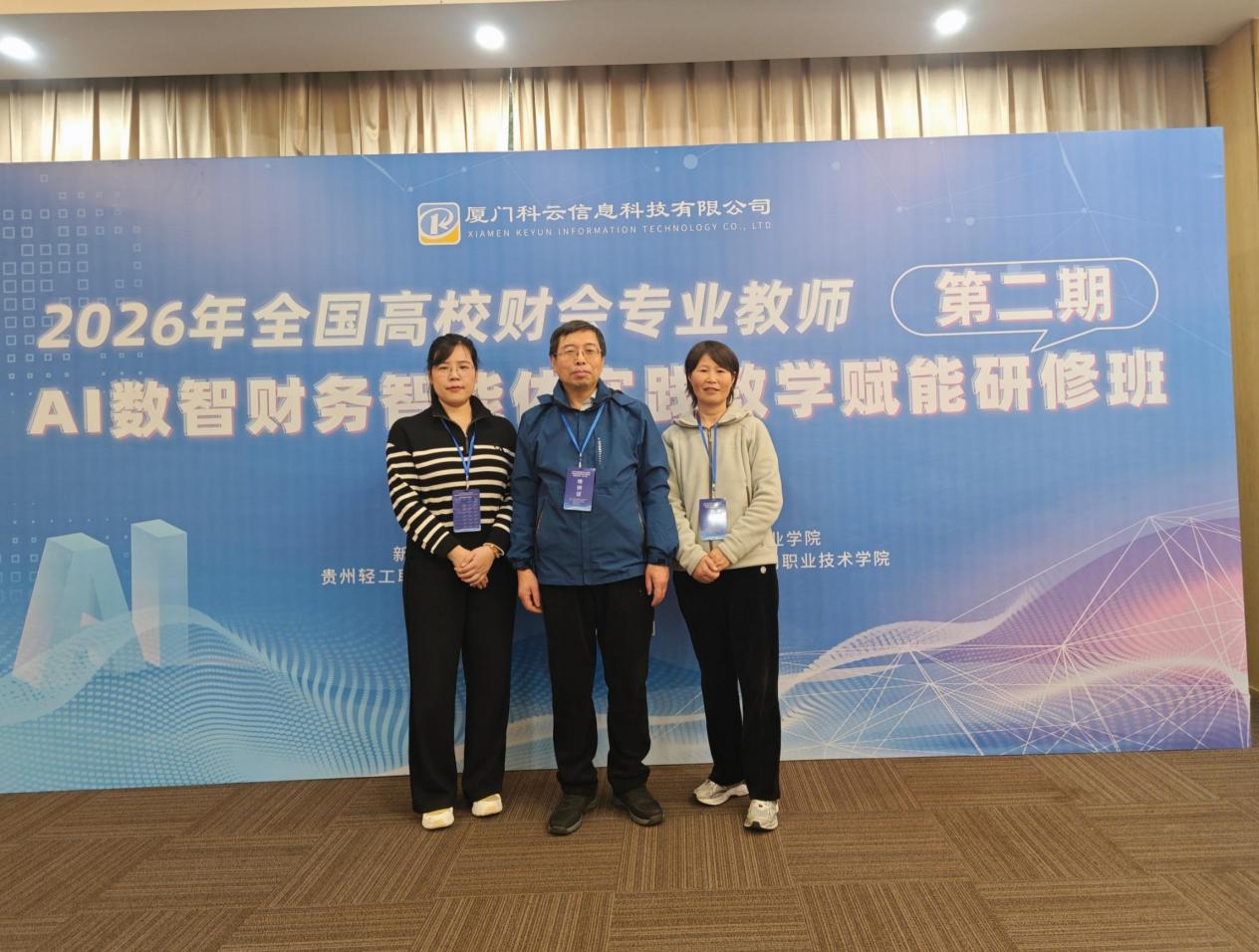 为了切实提升高校财会专业教师的数智化教学能力,推动AI技术与财会教学深度融合,培养适配数字经济发展需求的复合型财会人才,1月19日至1月23日财务管理专业叶小平老师参加了由厦门科云公司主办的“AI数智财务智能体实践教学赋能研修班”。随后26日至30日,会计学专业毛卫东、王艳超以及吴黛茜三位老师参加了该研修班的第二期学习。