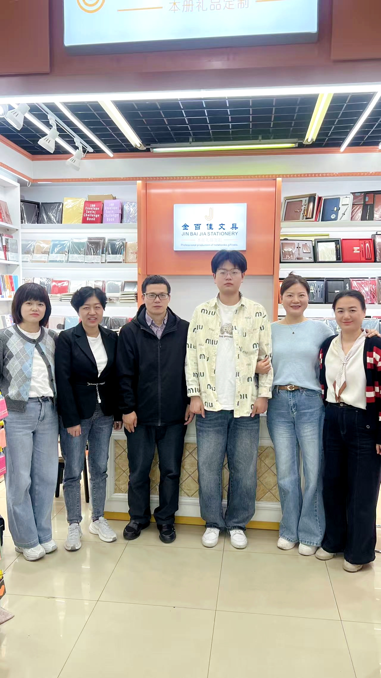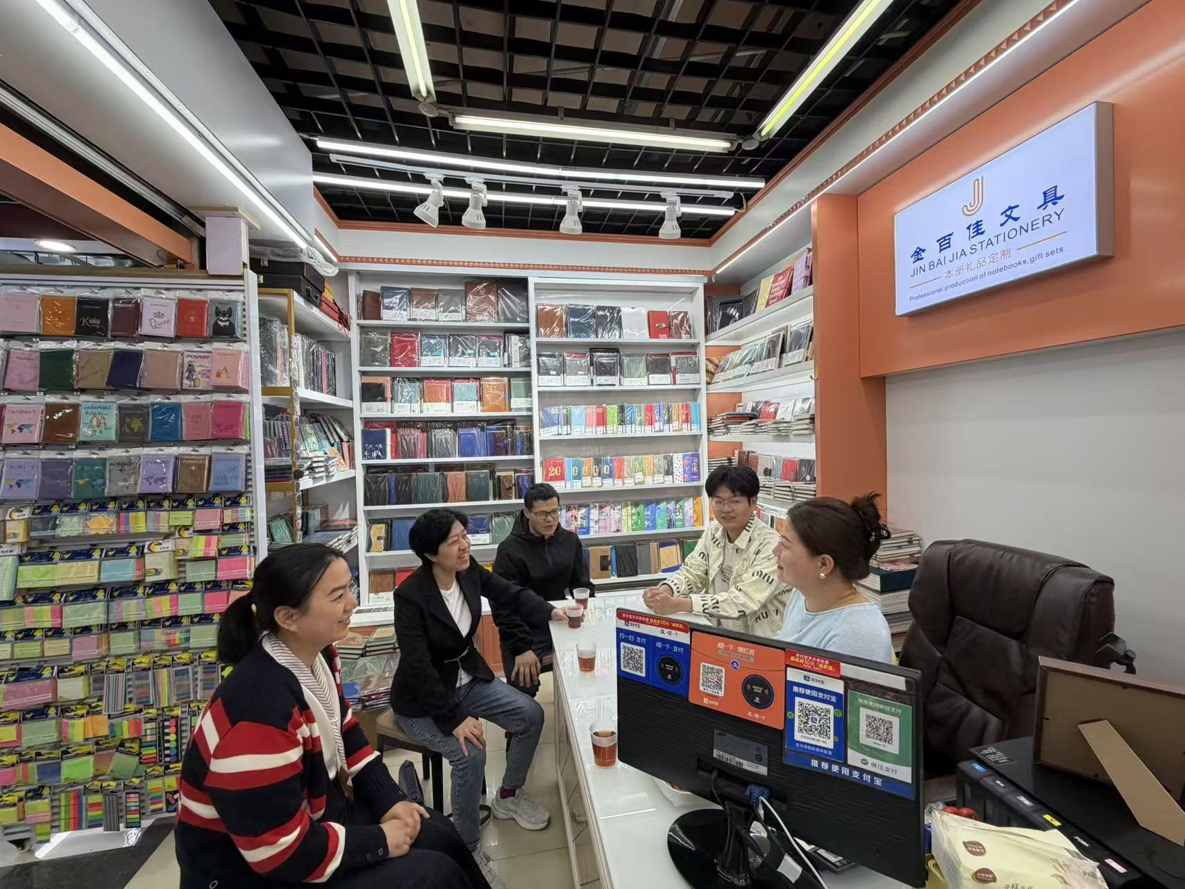 随后,教师一行前往义乌国际商贸城开展走访调研。在商贸城三区金百佳文具门店,教师对在岗实习学生进行了看望与交流,详细了解其岗位内容与实践收获。据了解,在走访前,该实习学生刚刚接待了一位来自埃及的客户,并与其就相关产品初步达成合作意向,体现了较强的实际沟通能力与业务素养。